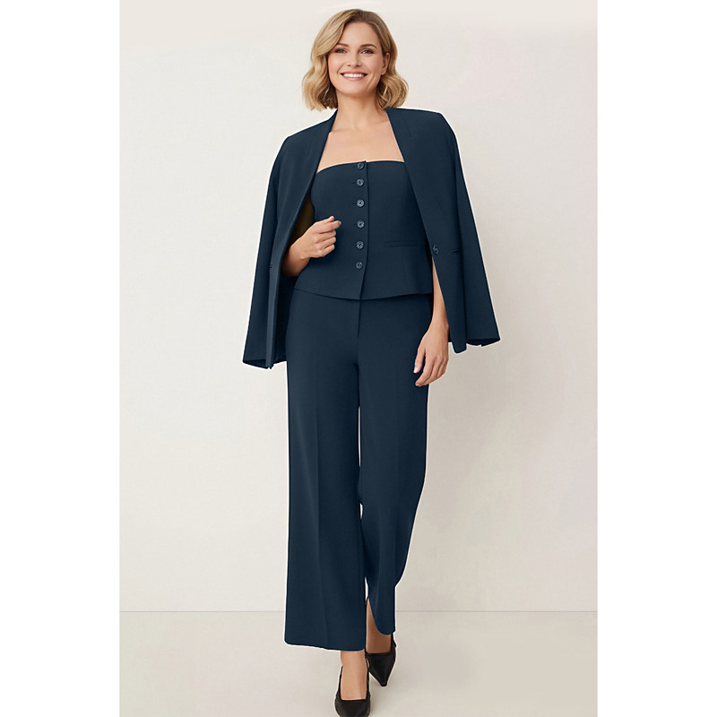 Women's 3 Pieces Suits 3 Piece Office Work Formal Stretch Fabric Elegant Vintage Simple Sleeveless Long Sleeve Floor Length Strapless Peak Lapel Single Breasted