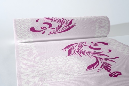 MANK Tischläufer Airlaid Clarissa in Violett, 40 cm x 24 m, 1 Stück - Tischtuch Tischband Dahlien Blüten