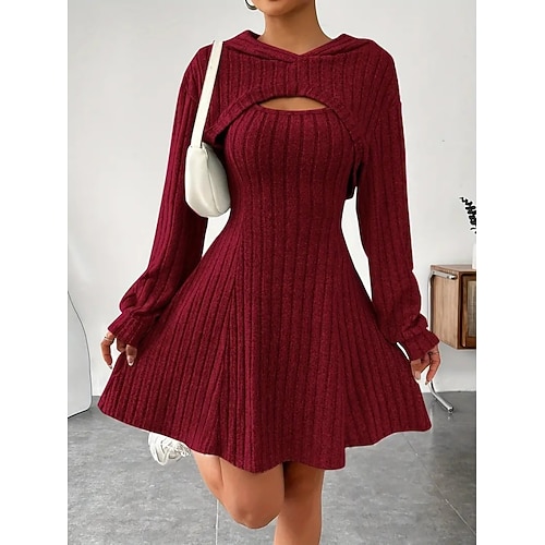 Per donna Insieme del vestito Abito a trapezio Elegante Semplice Arricciato Mini Abito Manica Lunga Con Cappuccio All'aperto Vacanza Nero Vino Albicocca Primavera Autunno Vestibilità regolare