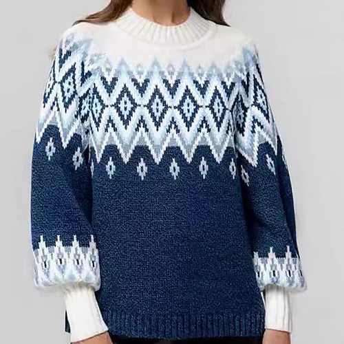 Per donna Maglione natalizio Fair Isle Felpa Maglione Fair Isle Streetwear Casual Geometrico Girocollo Lavorato a maglia Stampato Manica Lunga Top Regolari Maglia Quotidiano Ferie Uscire Nero Vino