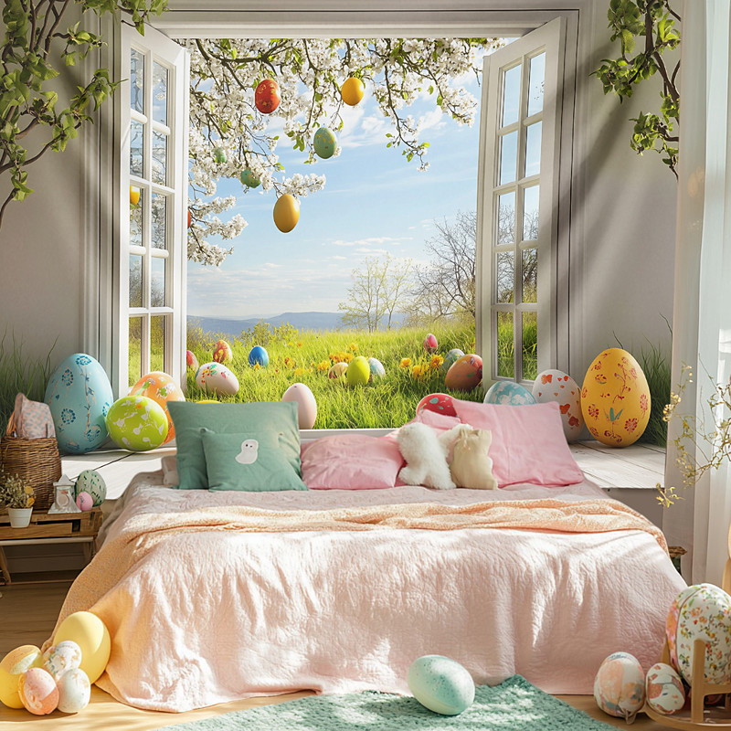 Hanging Tapestry Bunny Eggs Wall Art Large Tapestry Mural Decor Photograph Backdrop Blanket Curtain Home Bedroom Living Room Decoration