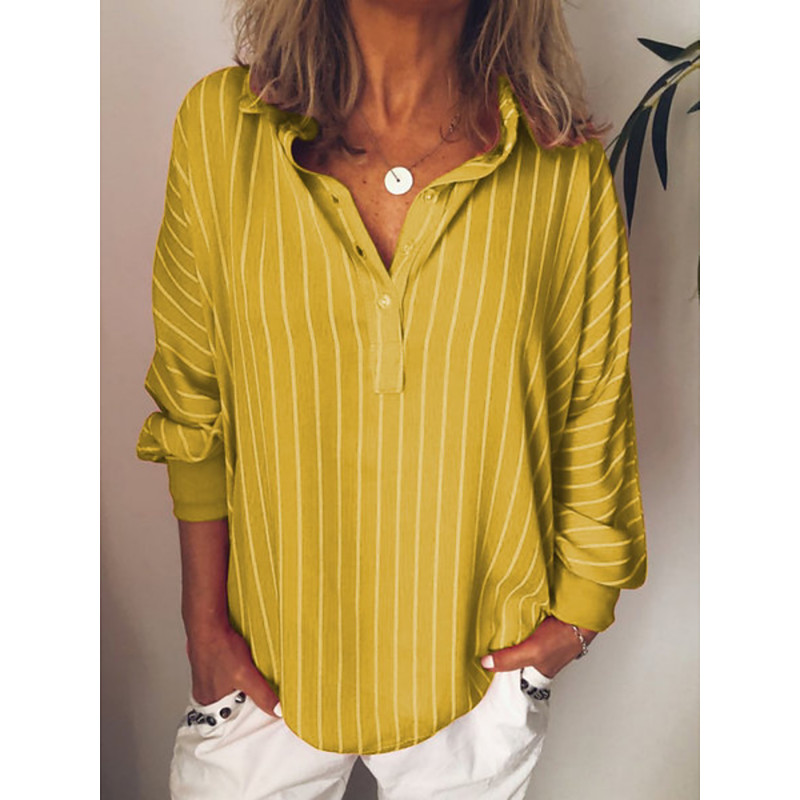 Women's Blouse Striped Stylish Casual Long Sleeve Shirt Collar Regular Tops Daily Buttons Print Blue Yellow Red Green Spring Fall