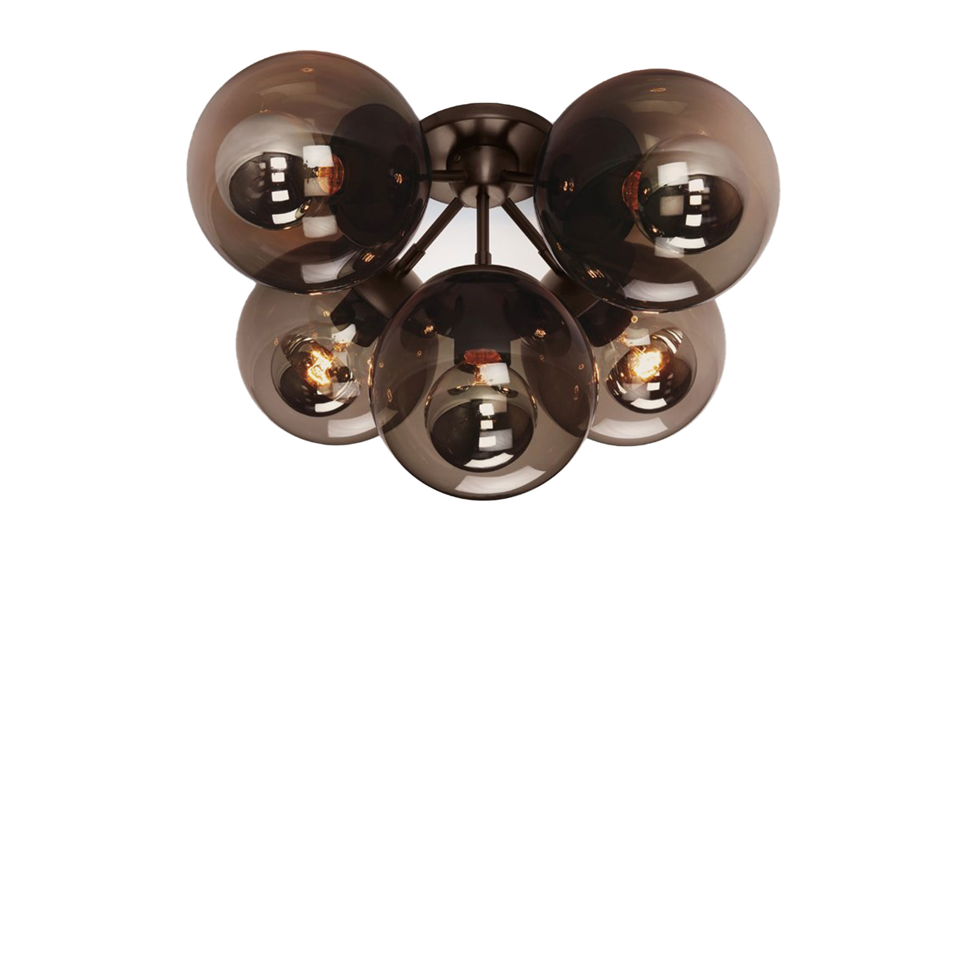 Roll & Hill - Modo Ceiling Mount 5 Globes Rökfärgat glas, Brons - Plafonder - Jason Miller - Brun,Brons