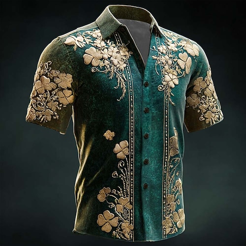 Festa di San Patrizio Per uomo Quadrifoglio Trifoglio Stampa Floreale Camicia Camicia con Bottoni Manica Corta Vintage Retrò Feste Ferie Estate Primavera Collo ripiegato Stampa 3D camicie con colletto
