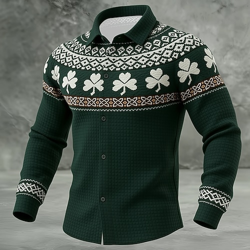 Festa di San Patrizio Per uomo Trifoglio Arte celtica Camicia Camicia a nido d'ape Camicia casual Manica Lunga Vintage Retrò Ferie Estate Primavera Collo ripiegato Stampa 3D Testurizzato Camicie con
