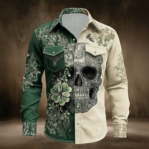 Festa di San Patrizio Per uomo Paisley Teschio Trifoglio Camicia Camicia con Bottoni Manica Lunga Vintage Retrò Feste Ferie Primavera Autunno Collo ripiegato Stampa 3D Due tasche anteriori Camicia