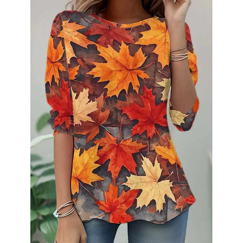 Women's T Shirt Floral Graphic Plants Vintage Fashion Stylish Long Sleeve Crew Neck Round Neck Regular Tops Daily Weekend Print Brown Spring Fall Winter