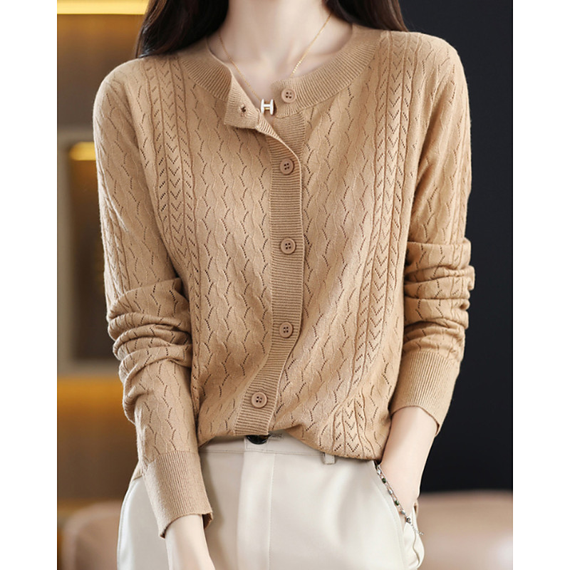 Women's Sweater Cardigan Streetwear Casual Solid Color Crew Neck Buttons Knitted Long Sleeve Regular Tops Knit Daily Holiday Weekend Blue Yellow Fall Winter