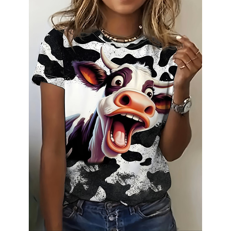 Women's T Shirt Graphic Animal Vintage Stylish Classic Short Sleeve Crew Neck Round Neck Regular Tops Daily Weekend Print White / Black Black White Summer Spring Fall Winter
