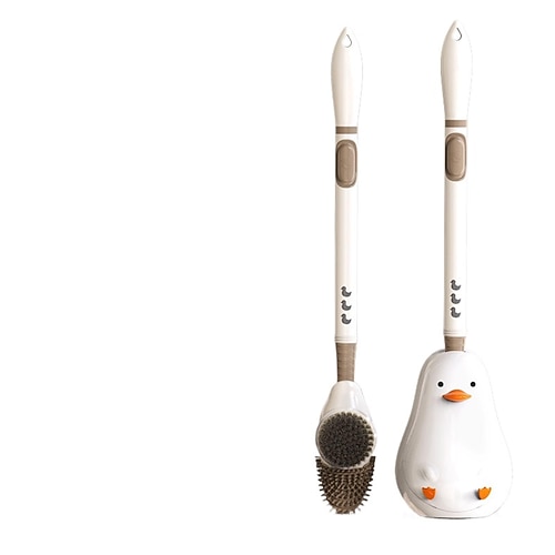 Scopino per WC con anatra dei cartoni animati e spray liquido per la pulizia della casa, senza angoli morti, con base, manico lungo da parete