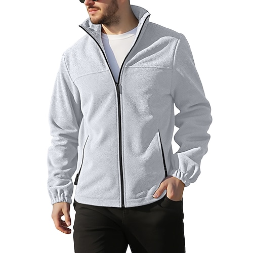 Per uomo Giacca da Esterno Giacca in Pile Formale Casa Calore Termico Tasca Base Primavera Autunno Tinta unica Attivo Neutro Colletto a Camicia Regolare Grigio scuro Nero Bianco Viola Arancione Giacca