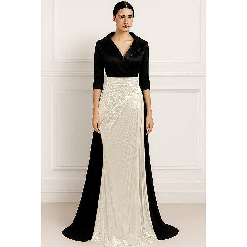 A-Line Floor Length Evening Gown Ball Gown with Overskirt Formal Dress Elegant Silky 3/4 Length Sleeve Lapel Wedding Formal Champagne Mother Of the Bride Dress Satin with Glitter Pleats