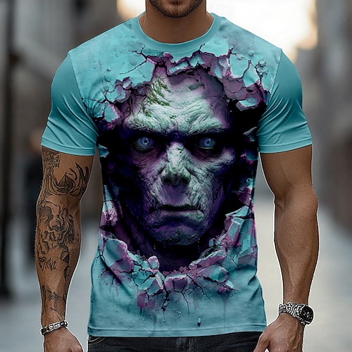 Herren Optische Täuschung Zombies 3D T Shirt Kurzarm T-Shirt 3D-Druck Rundhalsausschnitt Hemd Übertrieben Designer Horror Party Straße Ferien Blau Grün 1# Grün 2# Sommer Frühling Ganzjahres Bekleidung