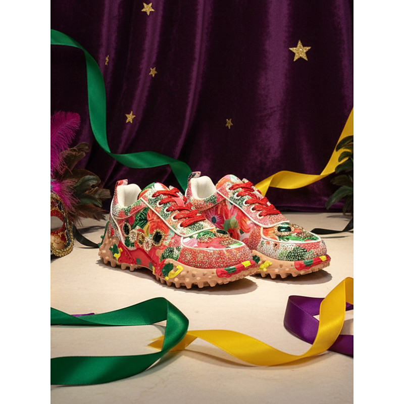 Women's Mardi Gras Colorful Rhinestone-Embellished Sneakers with Funky Gem Details – Fun and Sparkly, Perfect for Carnival, Festivals, Costume Parties, and Bold Fashion Statements
