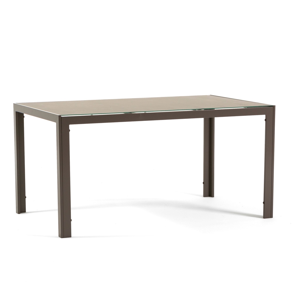RATTATAN Rechteckiger Tisch 150x90 cm für Innen- und Außenbereich, aus Aluminium und Glas, für Küche, Esszimmer, Garten, 6 Personen–MILO–Taupe/Granit