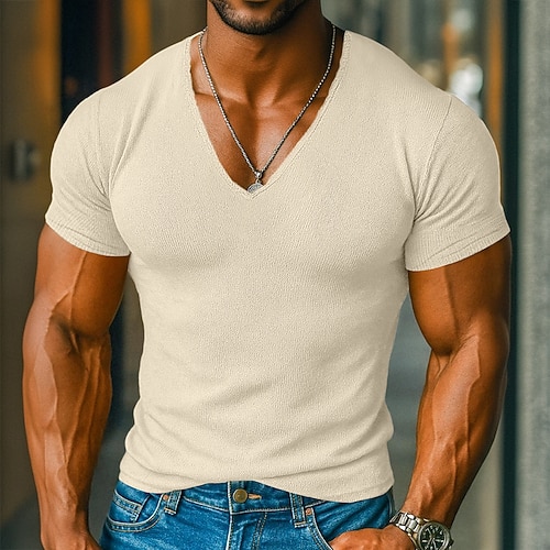 Herren T Shirt Muskelshirt Geripptes Strick-T-Shirt Kurzarm V Ausschnitt Sommer Einfach Mode Designer Lässig Druck Straße Sport Ferien Schwarz Weiß Rosa Top T-Shirt für Herren