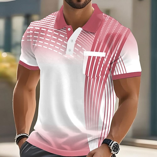 Herren Geometrisch Golf Sport-Poloshirts Kurzarm Polo-Shirts Hemden mit Kragen Lässig Athleisure Ferien 3D-Druck Knöpfe Atmungsaktives Gewebe Frühling Sommer Blau Rote Purpur