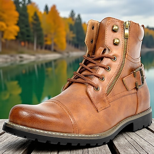 anfibi da uomo con cerniera laterale e fibbia - stivaletti allacciati alla moda casual per lo streetwear urbano e gli outfit di tutti i giorni