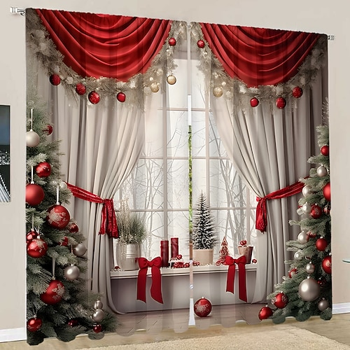 Tende natalizie in stile europeo, stampa digitale 3D, tende per finestre con mantovana, elegante decorazione natalizia per soggiorno, camera da letto, arredamento per la casa, set di tende