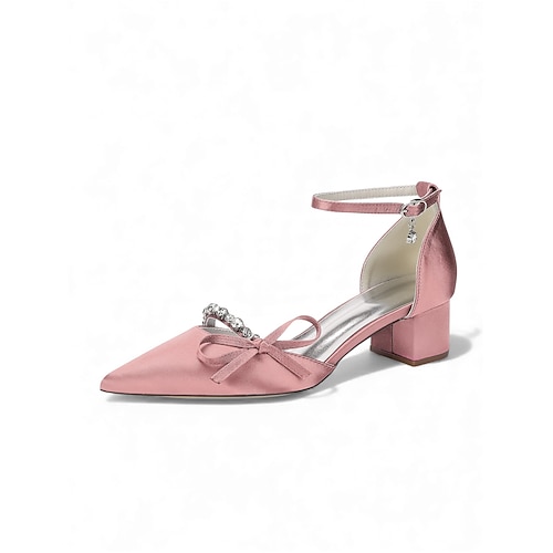 Elegante, rosafarbene Pumps mit Blockabsatz und Schleife – elegante, spitz zulaufende Schuhe mit Knöchelriemen für die Mutter der Braut, perfekt für einen schicken City-Chic-Hochzeitslook. formelle