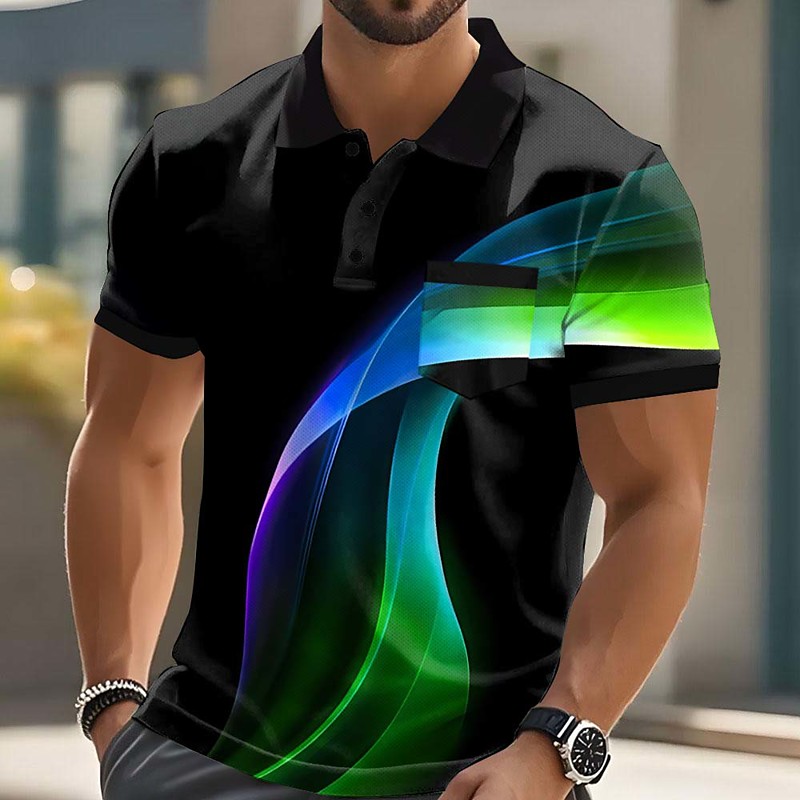 Men's Abstract Geometic Polo Short Sleeve Polo Shirts Collared Shirts Business Casual Outdoor Athleisure Daily Wear 3D Print Buttons Summer Black 3 Black 1 Black 2
