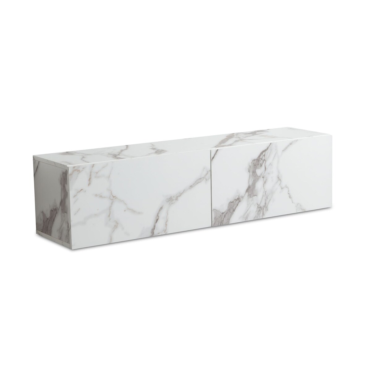 KADIMA DESIGN Lowboard Hängend Marmor-Optik Weiß 120x30x30 cm TV-Schrank, Design Fernsehtisch mit Klapptüren Modern, Fernsehschrank Wand, TV-Kommode Fernsehkommode