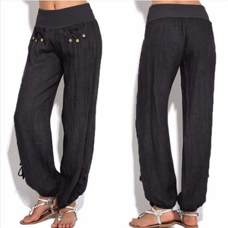 Women's Cotton Linen Pants Bloomers Baggy Pants Vacation Solid Lounge Mid Waist Baggy Multiple Pockets Side Button Daily Vacation Weekend Black White Red Wine Navy Blue Summer Spring Fall Regular Fit