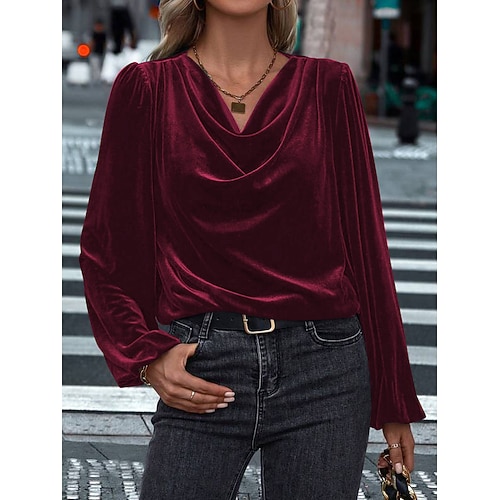 Blusa in Velluto da Donna Colore Solido Elegante Stilosa Casual Maniche Lunghe Collo Cowl Top Regolari Giornalieri Nero Vino Blu Navy Viola Verde Primavera Autunno Inverno