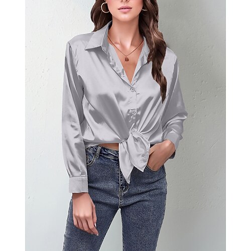 Per donna Camicia Elegant Elegante Raso/Satin Semplice Elegante Casual Manica Lunga Colletto a Camicia Top Regolari Quotidiano Uscire Bottoni Nero Rosa Vino Rosso Blu marino Primavera Autunno