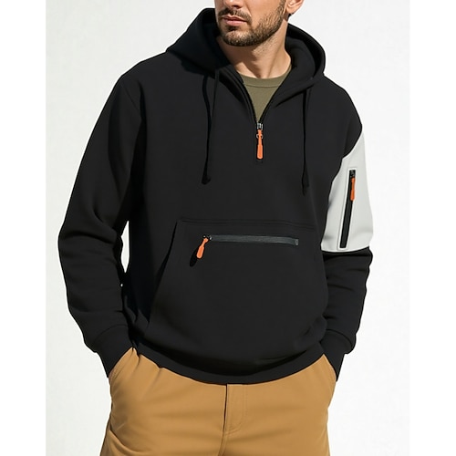 Per uomo Felpa con cappuccio Felpa con cappuccio e zip corta Nero Giallo Vino Blu marino Con Cappuccio Blocco di colori Patchwork Tasca Sport Outdoor Quotidiano Ferie Poliestere Streetwear