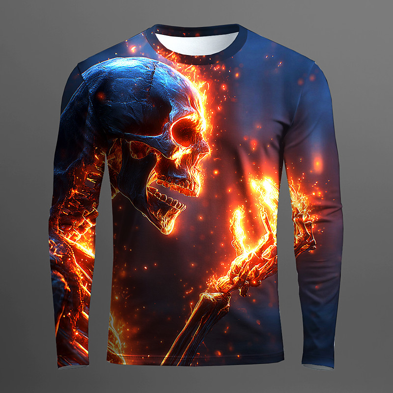 Halloween Men's Skull Optical Illusion T Shirt Long Sleeve T shirt 3D Print Crew Neck Shirt Fashion Exaggerated Street Casual Daily Blue Green Summer Spring Fall Clothing Apparel S M L XL XXL XXXL