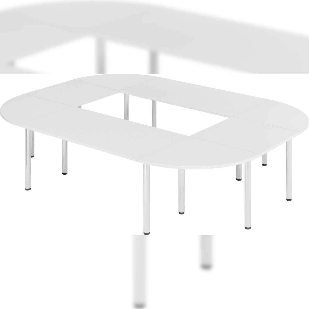 bümö Konferenztisch O-Form 320x240 cm großer Besprechungstisch in weiß, Besprechungstisch mit Chromfüßen, Meetingtisch für 10 Personen, Tisch für