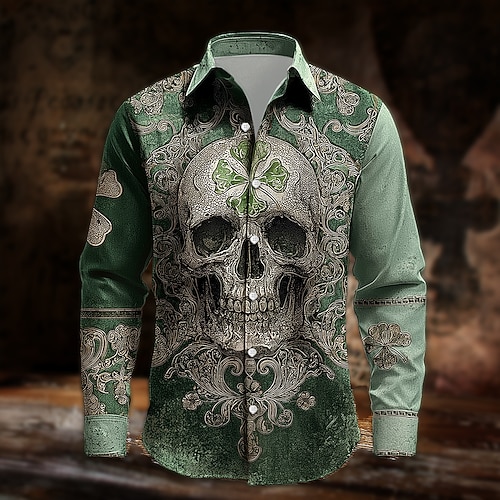 Festa di San Patrizio Per uomo Teschio Quadrifoglio Trifoglio Camicia Camicia con Bottoni Manica Lunga Vintage Retrò Feste Ferie Primavera Autunno Collo ripiegato Stampa 3D camicie con colletto verde