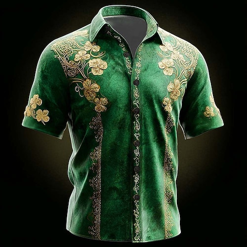 Festa di San Patrizio Per uomo Quadrifoglio Trifoglio Stampa Floreale Camicia Camicia con Bottoni Manica Corta Vintage Retrò Feste Ferie Estate Primavera Collo ripiegato Stampa 3D camicie con colletto