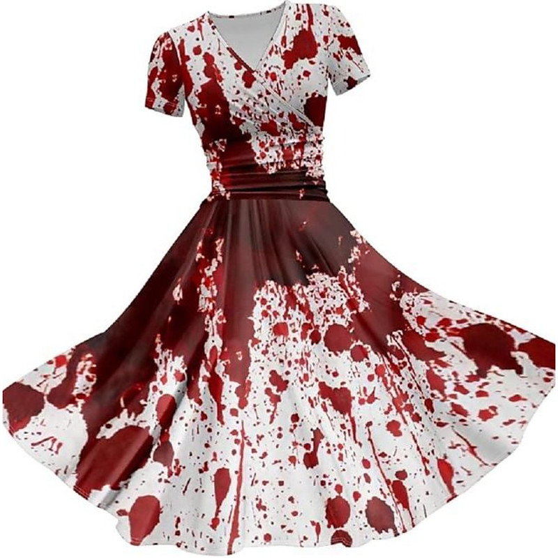 Women's Bloodstain Print Midi Dress A Line Dress Dress Fit And Flare Dress Party Casual Daily Holiday Regular Fit Graphic Abstract Short Sleeve V Neck Deep Green White Wine Red Fall