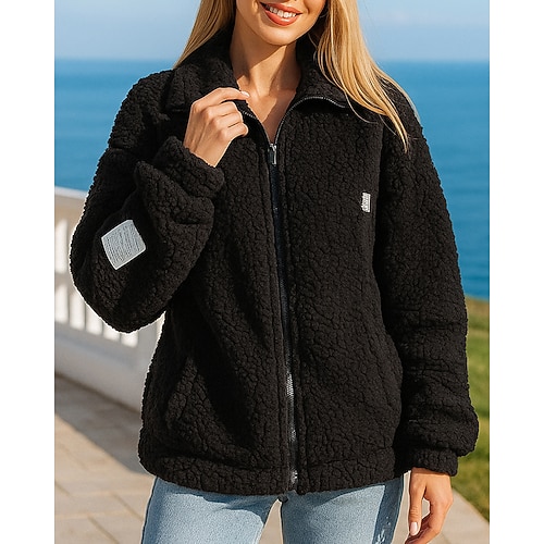 Per donna Felpa con zip Cappotto invernale Giacca in pile polare con tasche Manica Lunga Top Athleisure Autunno Tinta unita Antivento Caldo All'aperto Viaggio Vacanze abbigliamento sportivo