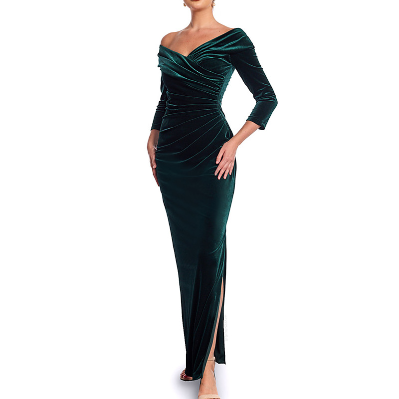 Mermaid Trumpet Floor Length Prom Dresses Evening Gown Ball Gown Formal Dress Elegant Glittering Celebrity Style 3/4 Length Sleeve Off Shoulder Garden Party Wedding Velvet with Ruched