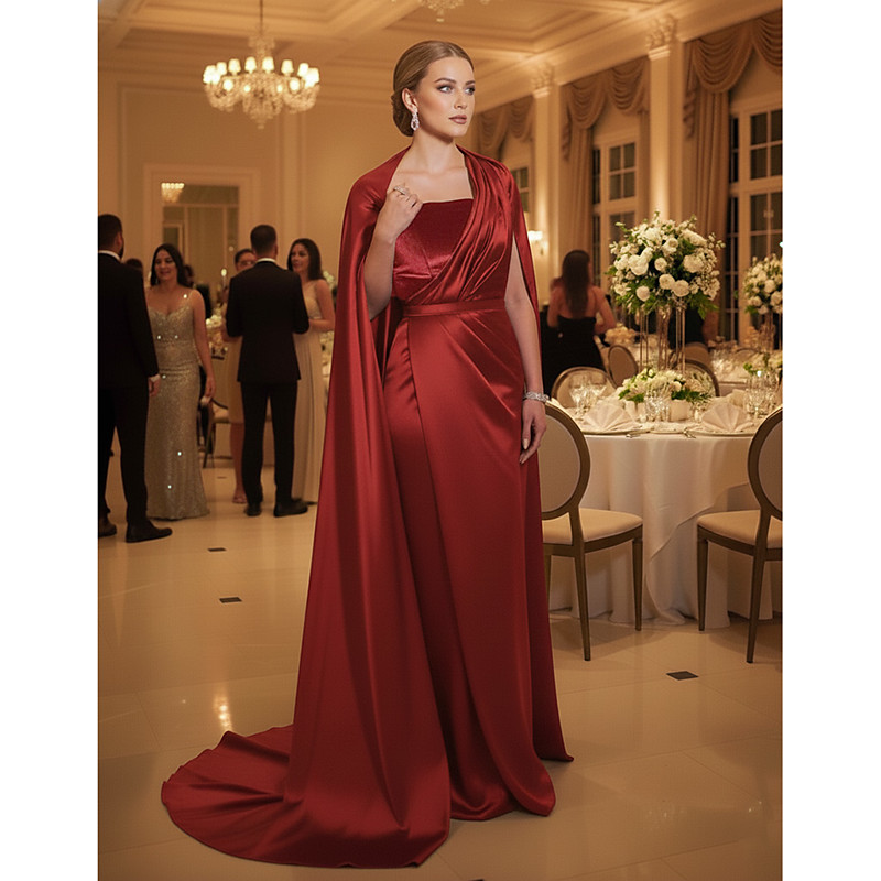 Sheath Column Floor Length Formal Dresses Evening Gown Cape Dress Ball Gown with Cape Evening Gown Formal Dress Elegant Sleeveless Strapless Formal Satin with Bow(s) Pleats