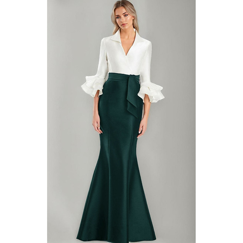 A-Line Floor Length Beaded Eembroidered Formal Dresses Mother of the Bride Dress Evening Gown Ball Gown Formal Dress Elegant Color Block High Split Half Sleeve Shirt Collar Wedding Formal Satin with