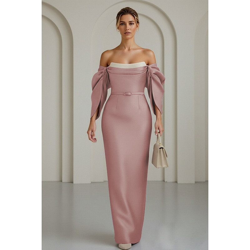 Sheath Column Floor Length Formal Dresses Evening Gown Prom Dresses Evening Gown Ball Gown Formal Dress Elegant Celebrity Style Short Sleeve Off Shoulder Wedding Formal with Ruched Slit Strappy