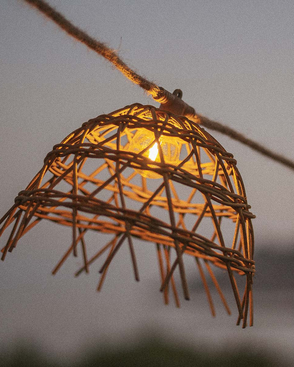 New Garden Alma - lichtslinger aansluitbaar via kabel of zonne-energie - oplaadbare batterij - 8 meter slinger waarvan 3 meter snoer - 10 LED-lampen incl. - IP44 - hout
