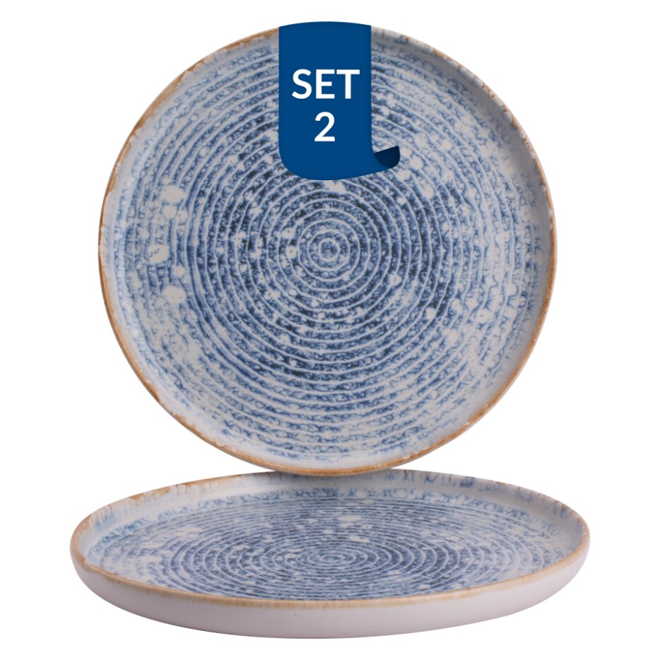 James Cooke Azure Vintage flache Teller 2er-Set Steingut Ø 28 cm blau weiß gestreift
