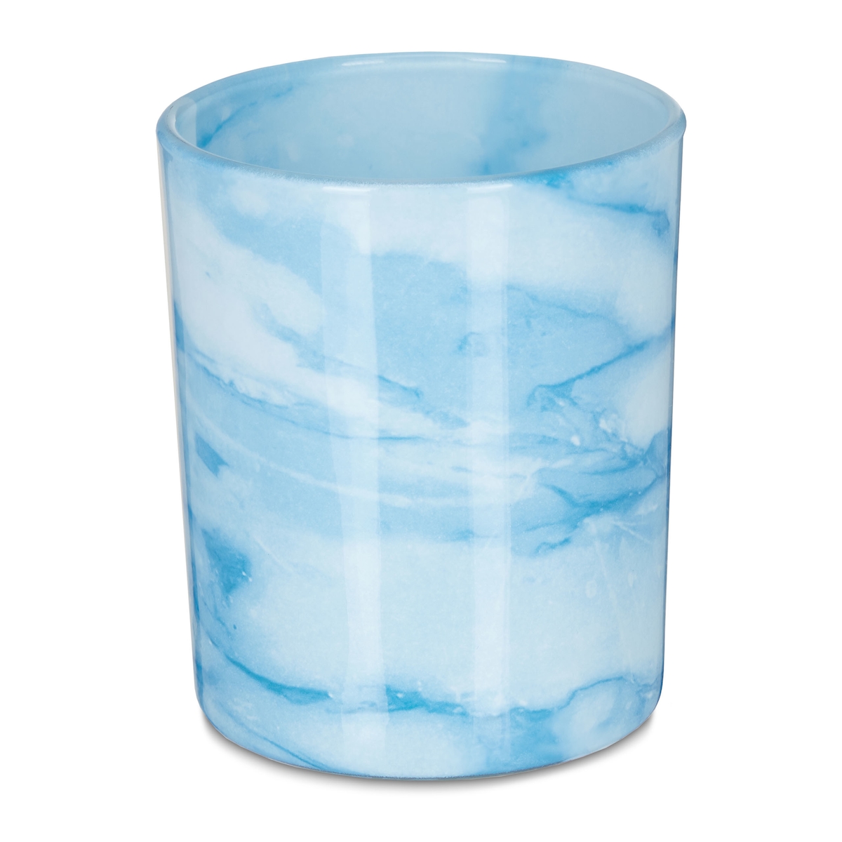 Relaxdays Teelichtgläser, 12er Set, Teelichthalter aus Glas, schlichtes Design, H x D: 8,5 x 7 cm, Deko, blau/creme