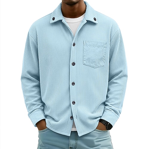 Per uomo Camicia Camicia button-down Camicia di Velluto a Coste Giacca camicia Sopracamicia Blu Giallo Rosso Blu marino Verde Manica Lunga Semplice Bavero Casuale All'aperto Tasca Frontale