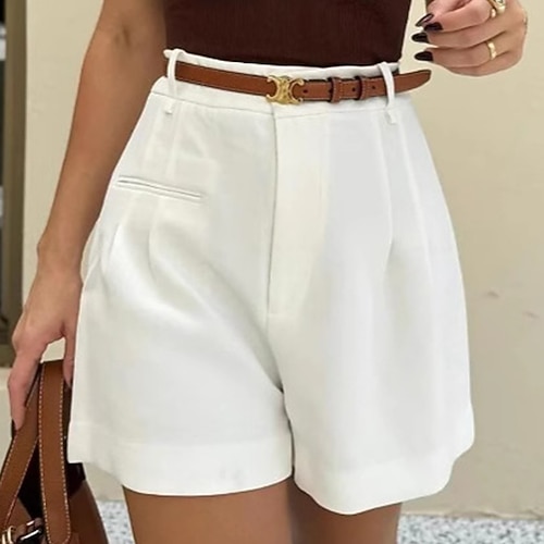 Damen Shorts Sommershorts Freizeitshorts Elegant Mode Alltagstauglich Kurz Mittlere Taille Einfarbig Einfach Tasche Komfort Weich Atmungsaktiv Hohe Elastizität Streetwear Arbeit Ferien Schwarz Weiß