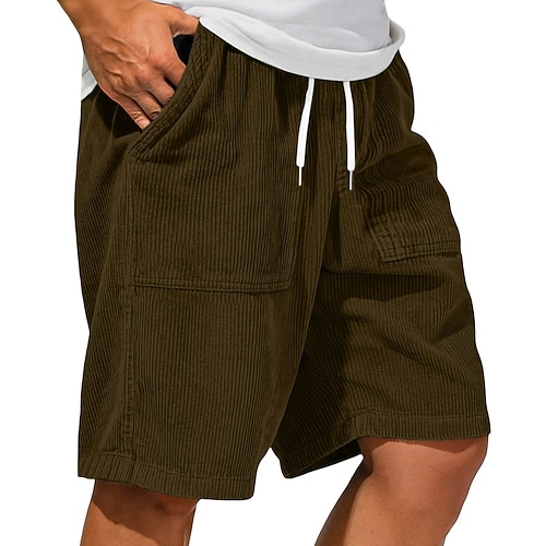 Herren Shorts Sommershorts Strandshorts Freizeitshorts Cordshorts Tasche Elastischer Bund Einfach Komfort Atmungsaktiv Kurz Lässig Outdoor Strand Urlaub Mode Schwarz Marineblau Unelastisch