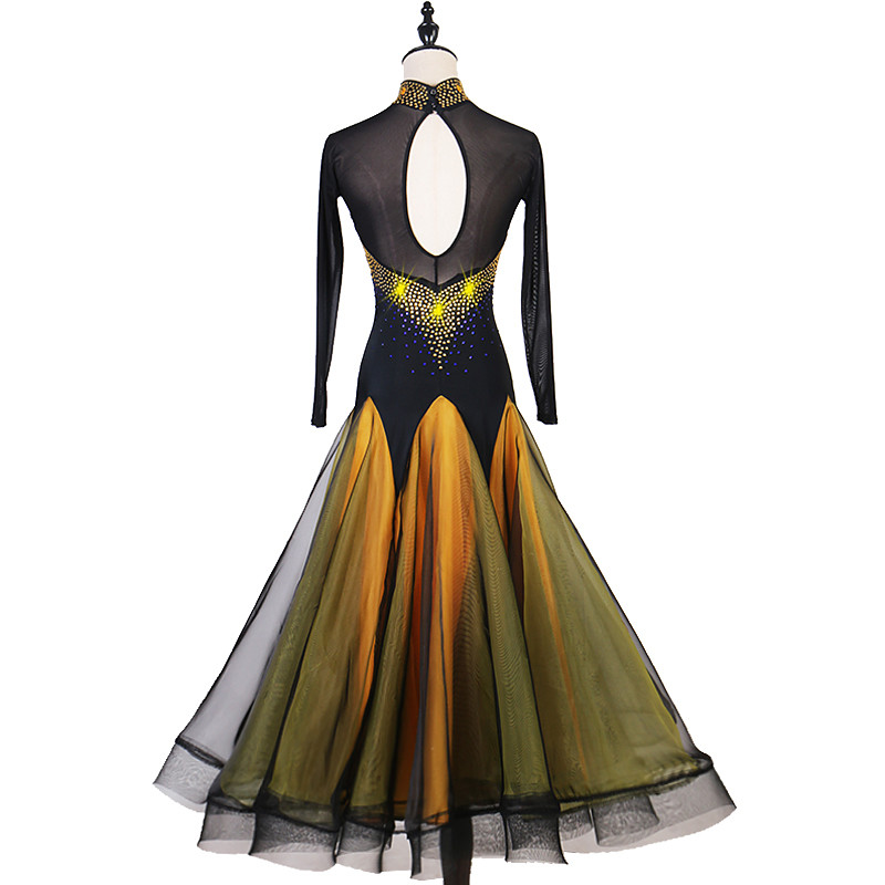 Ballroom Dance Dress Crystals / Rhinestones Women's Performance Training Long Sleeve Spandex Organza