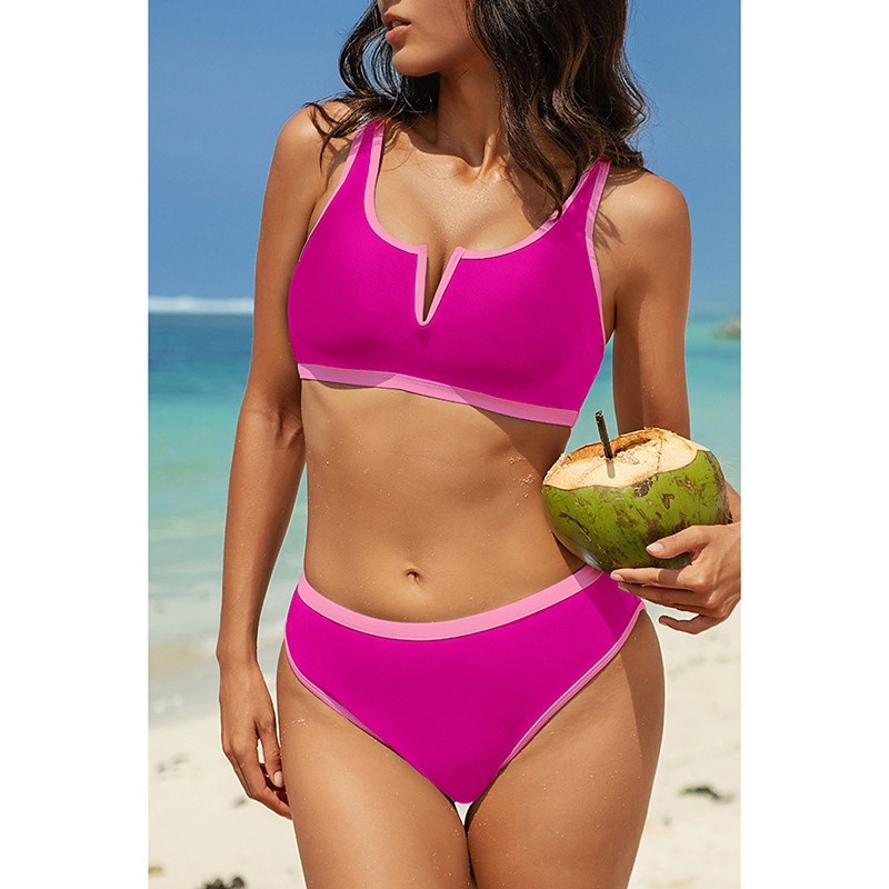 Women's Swimwear Bikini 2 Piece Swimsuit Backless Patchwork Tropical Beach Wear Color Block V Neck Sleeveless Bathing Suits