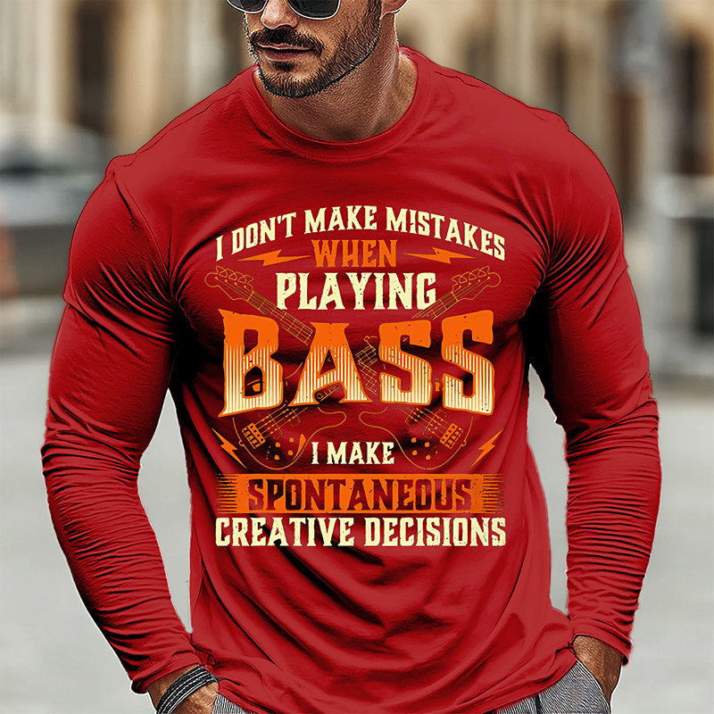I Don't Make Mistakes When Playing Bass I Make Spontaneous Creative Decisions Long Sleeve T Shirt Funny Bassist Musician Humor Graphic Tee Men Music Player Gift Black Top Clothing Apparel S M L XL XXL