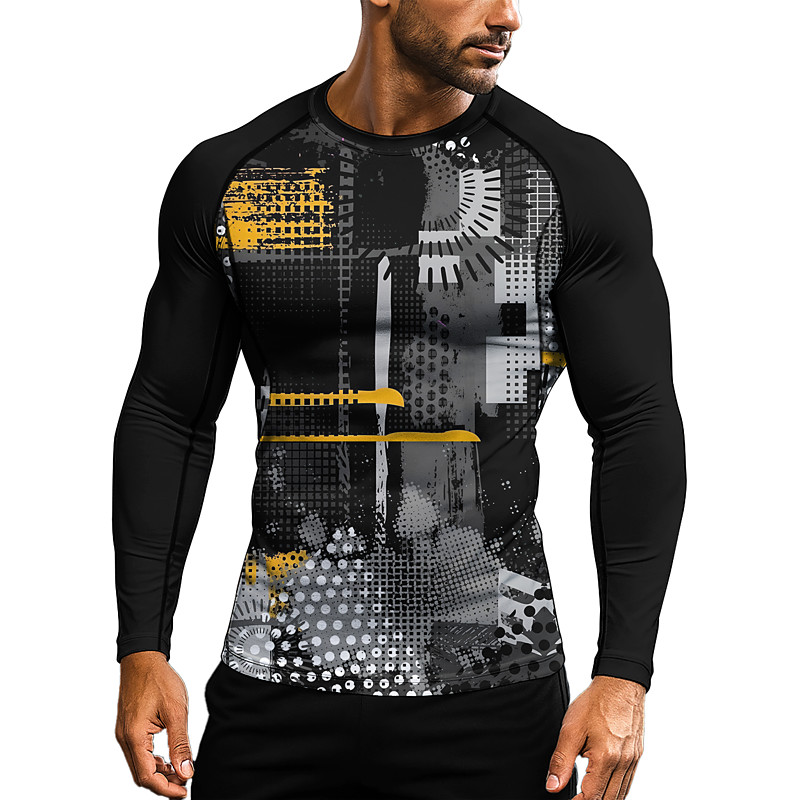 Men's Running T-Shirt Athletic Shirt Gym Shirt Fitness Shirt Workout Shirt Long Sleeve Tee Tshirt Geometric UPF 50 UV Resistant Soft Sweat wicking Mountain Bike / MTB Gym Workout Mountain Bike MTB